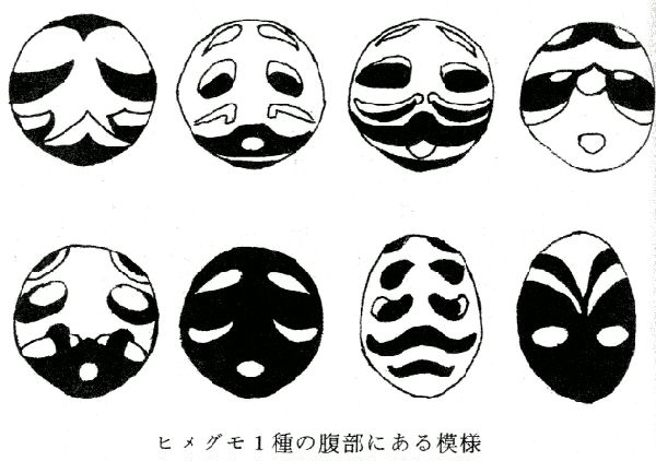 ![]() ▲中平清原図、「クモにある模様」『続 クモのふるまい』(著者自刊、1992年)より 中平が体長3mmほどのカメンヒメグモと仮称しているこのクモの正体はキヒメグモである(池田) |
