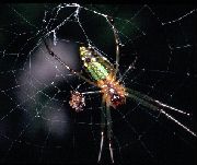 ![]() 第9問 コシロカネグモやアシナガグモの網の特徴は? What's web of this long leg spider? |